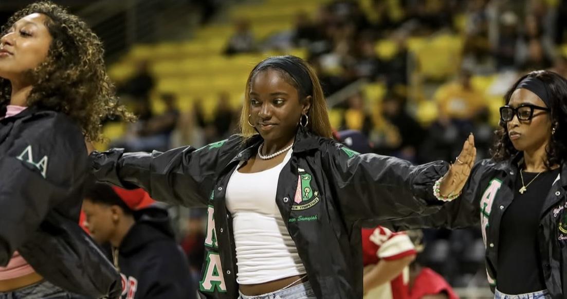 On Saturday, February 22, 2025, the men’s basketball team dedicated a portion of their halftime show to the Long Beach Honeys and NPHC. The Honeys brought the crowd to their feet with a captivating dance routine that blended jazz and majorette movements. Their performance celebrated Black artistry through powerful and graceful expressions of movement. Following the Honeys performance, NPHC fraternities and sororities took the court to deliver high-energy steps and strolls. Through intricate movements and rhythmic chants, the deep traditions of Black fraternities and sororities filled the Walter Pyramid.